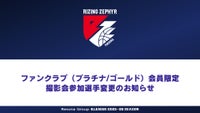 ファンクラブ(プラチナ/ゴールド)会員限定撮影会参加選手変更のお知らせ