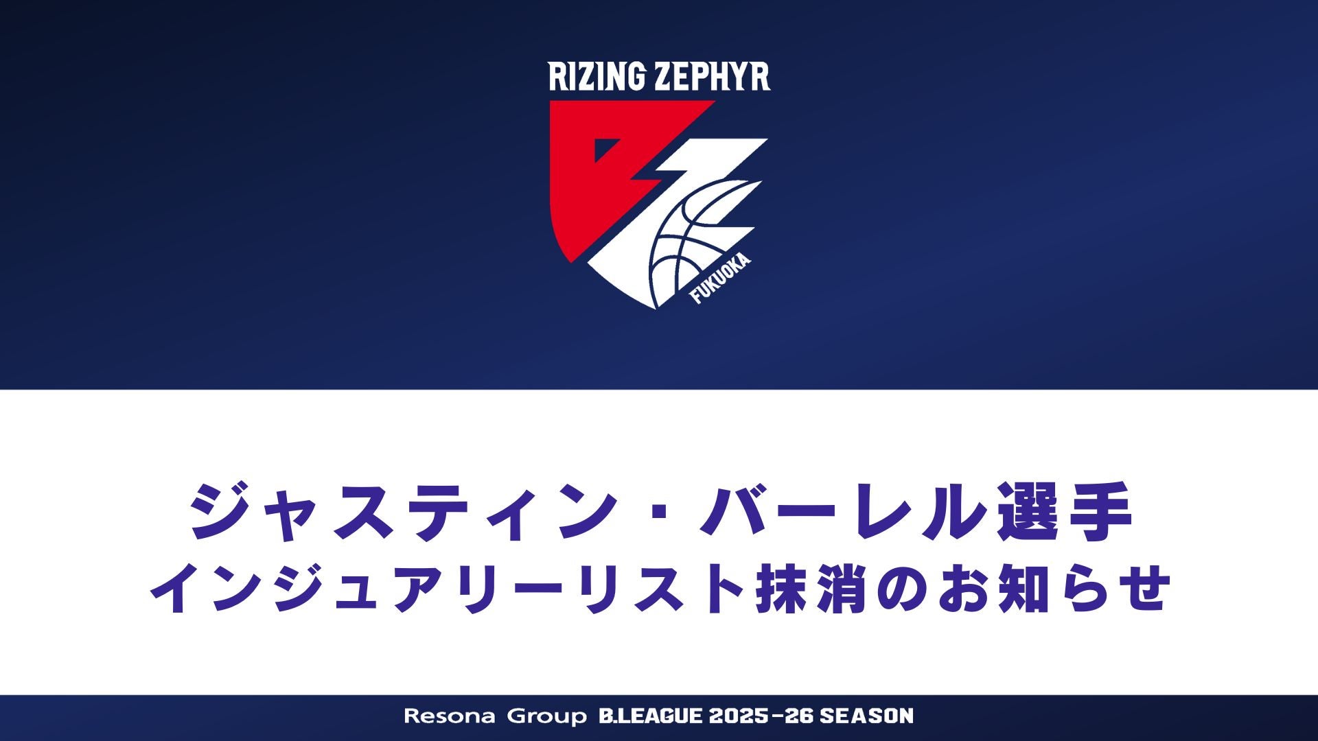 #24 ジャスティン・バーレル選手 インジュアリーリスト抹消のお知らせ
