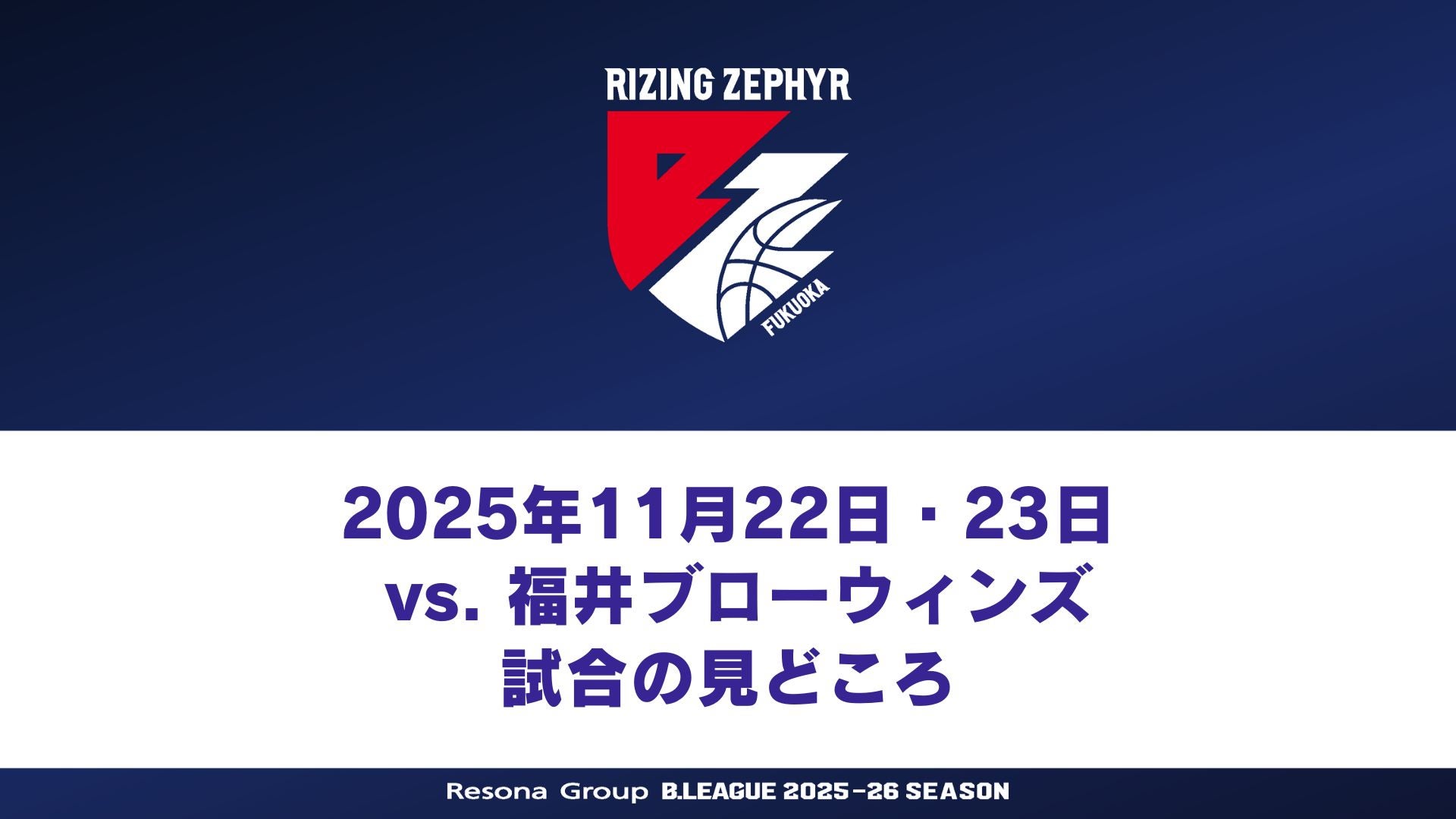 【試合の見どころ】11月22日・23日 vs.福井ブローウィンズ