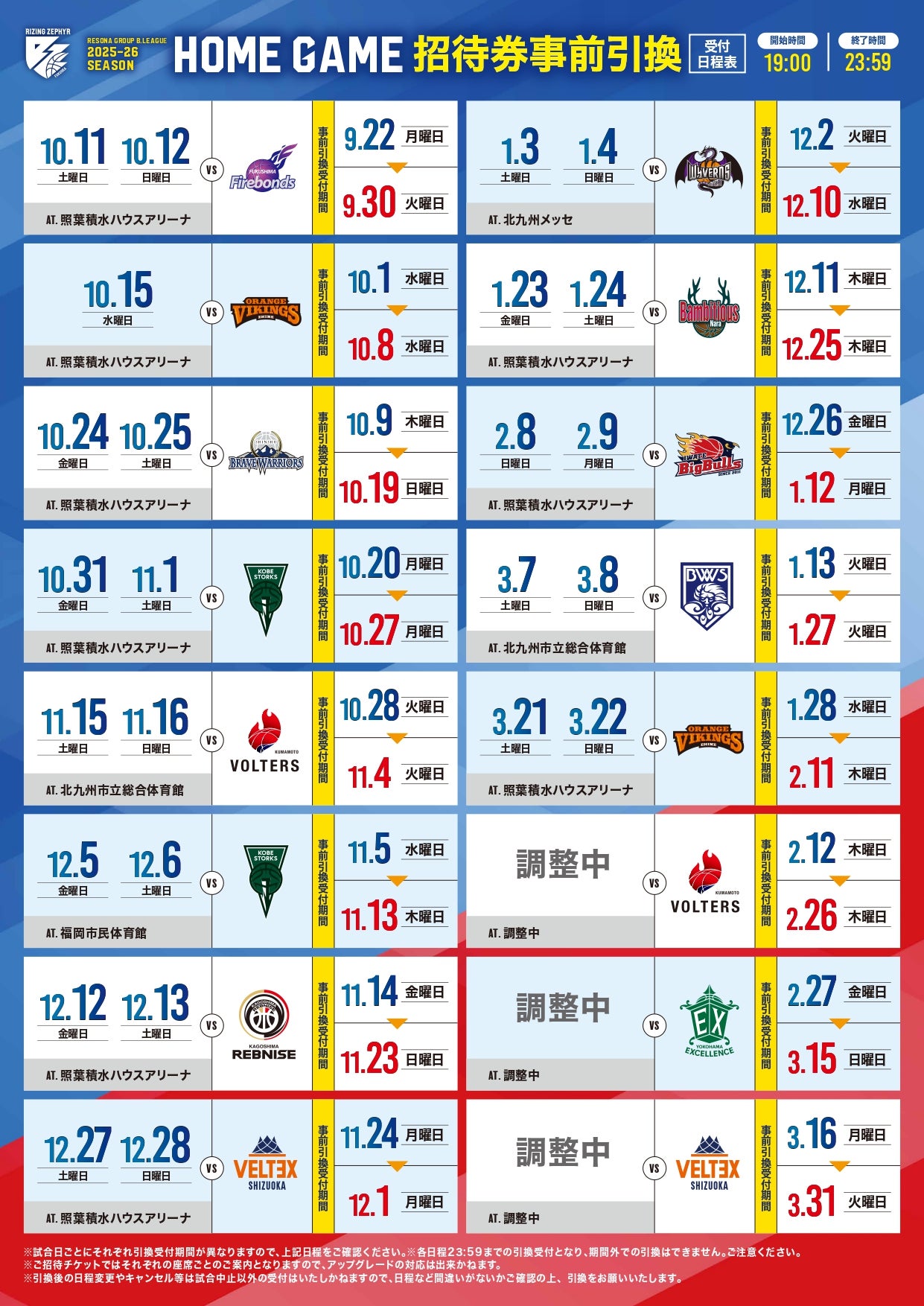 この度、りそなグループ B.LEAGUE 2025-26シーズン ライジングゼファーフクオカ公式ファンクラブ会員特典のひとつである「ホームゲーム招待券」の引換方法および引換日程スケジュールが決定しましたのでお知らせいたします。