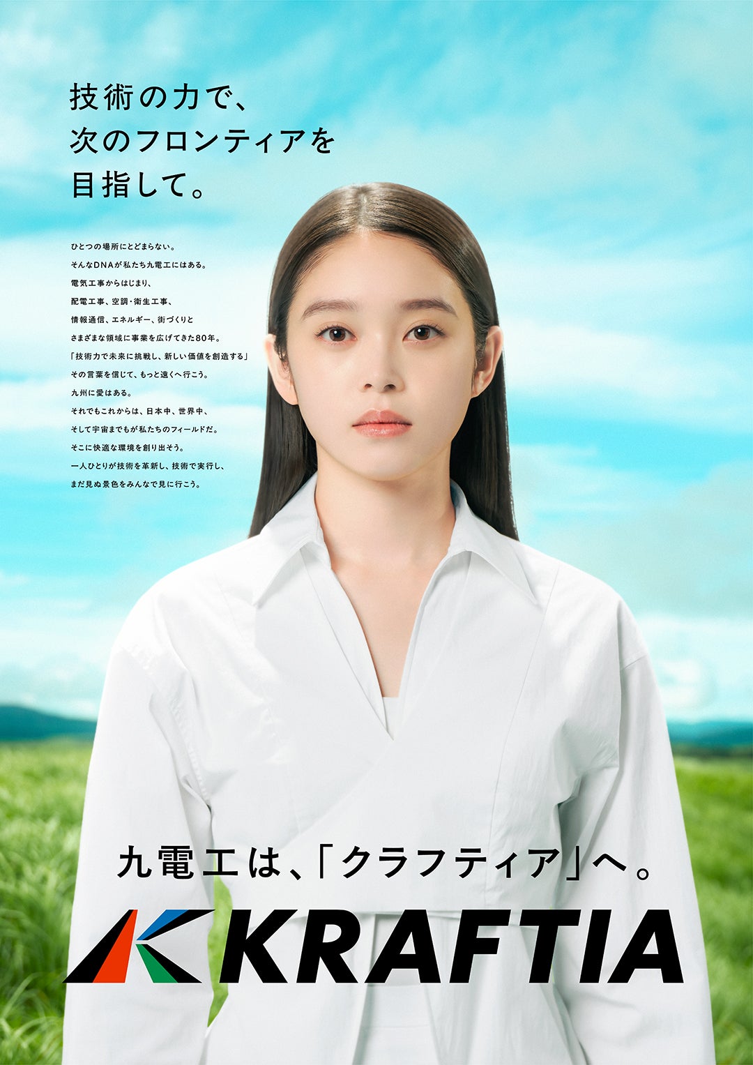 クラフティアは、皆さまの日常生活を支える総合設備業の会社です。電気工事、配電工事、空調・衛生工事、 情報通信、エネルギー、街づくりなど、さまざまな領域へ事業を拡大。事業エリアも九州にとどまらず、 日本全国へ、世界へと拡大しています。これからの未来を見据え、さらなる成長を遂げるために 2025年10月より社名を「九電工」から「クラフティア」に変更しました。