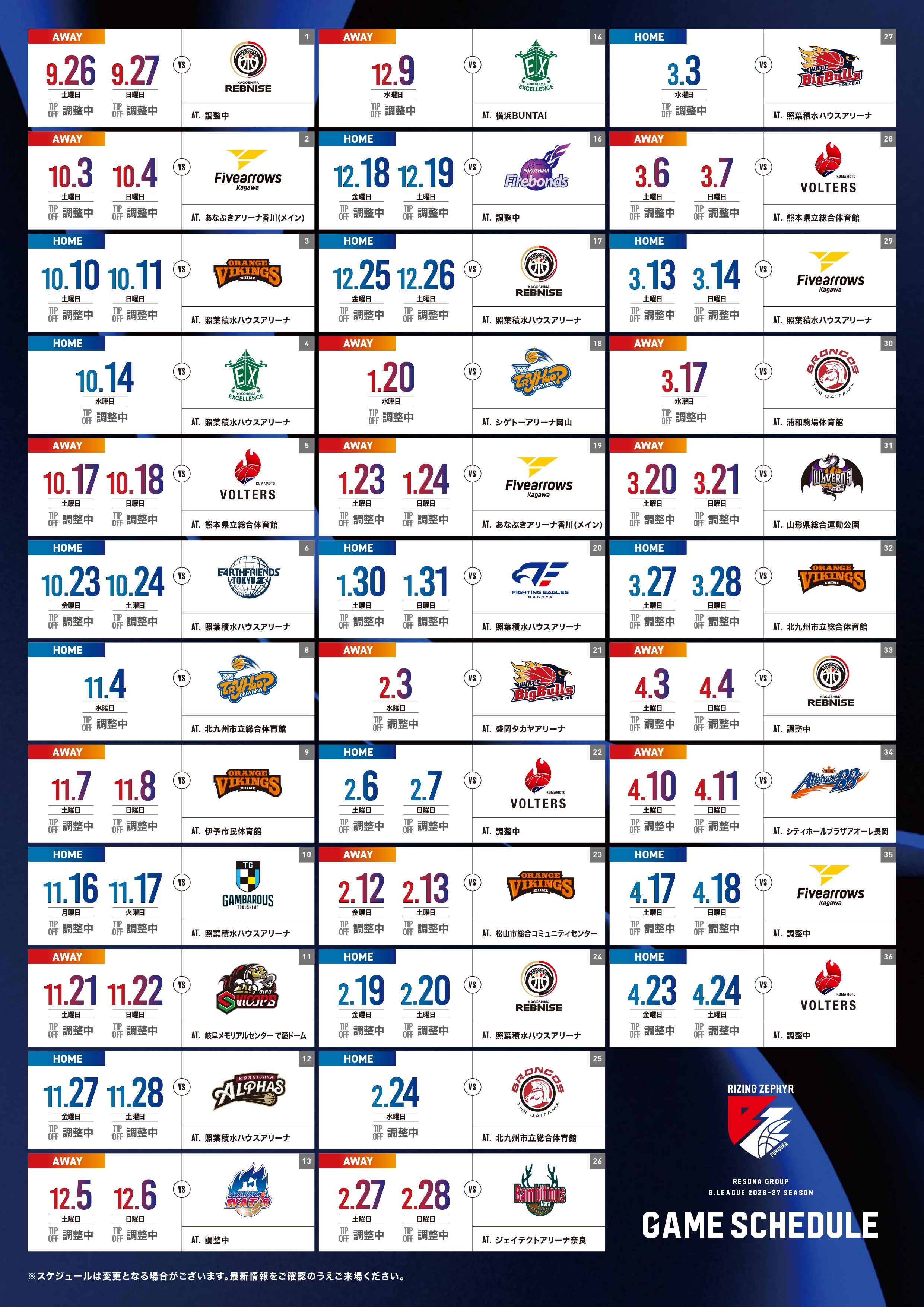 2026-27シーズンスケジュール