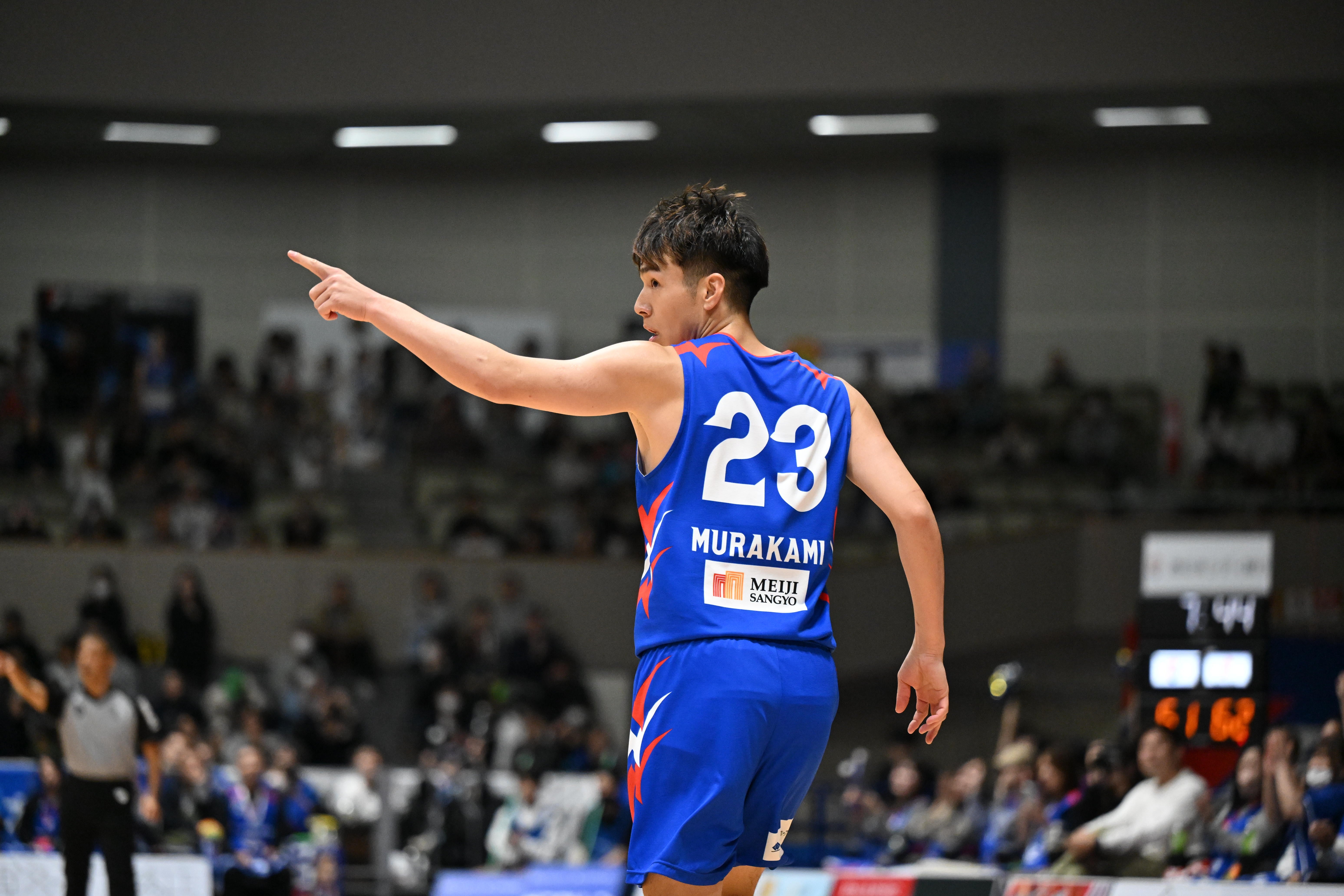 村上選手の魅力は、鋭いドライブとスピードを生かしたアタック力、そして相手ガードを封じるタフなディフェンス。